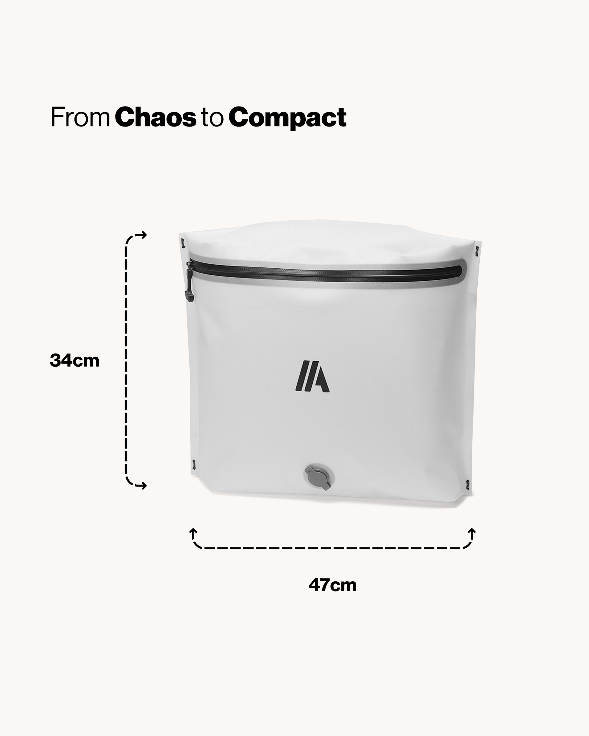 The Airback® Premium Compression Bag (34 x 47 cm) is crafted from waterproof, anti-rip nylon for maximum durability. Its airtight zipper seals your items securely, protecting them from moisture, dust, and odors. Using Airback® compression technology, it saves up to 50% more space in your luggage — perfect for clothes, bedding, or travel essentials.